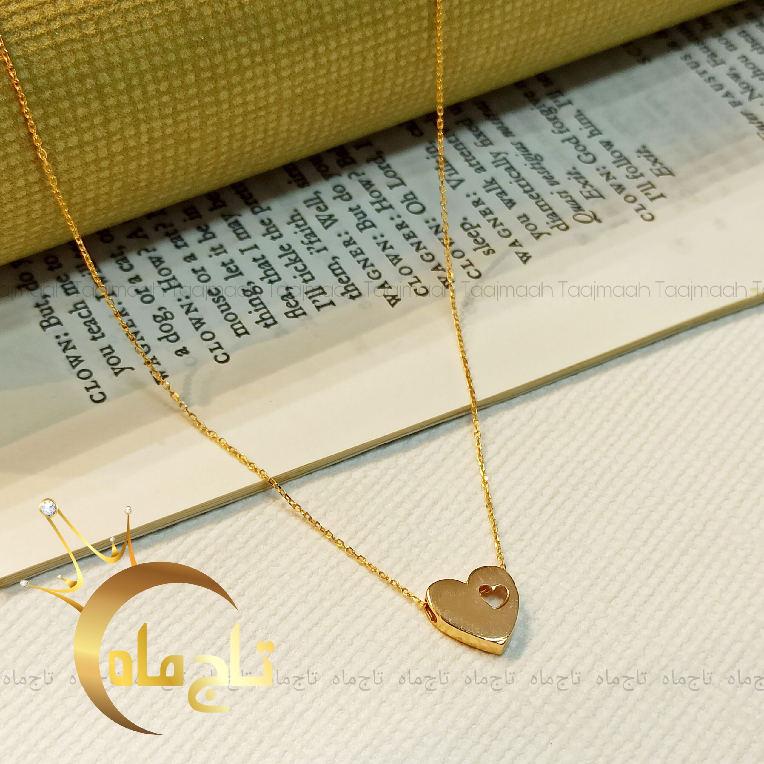 گردنبند قلب توخالی مینیمال برجسته طلا 18 عیار تاج ماه