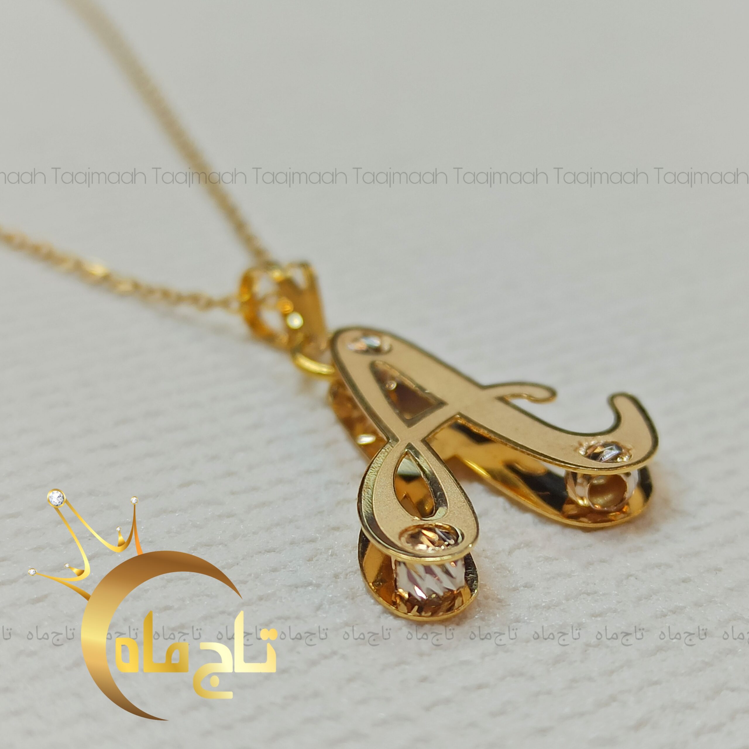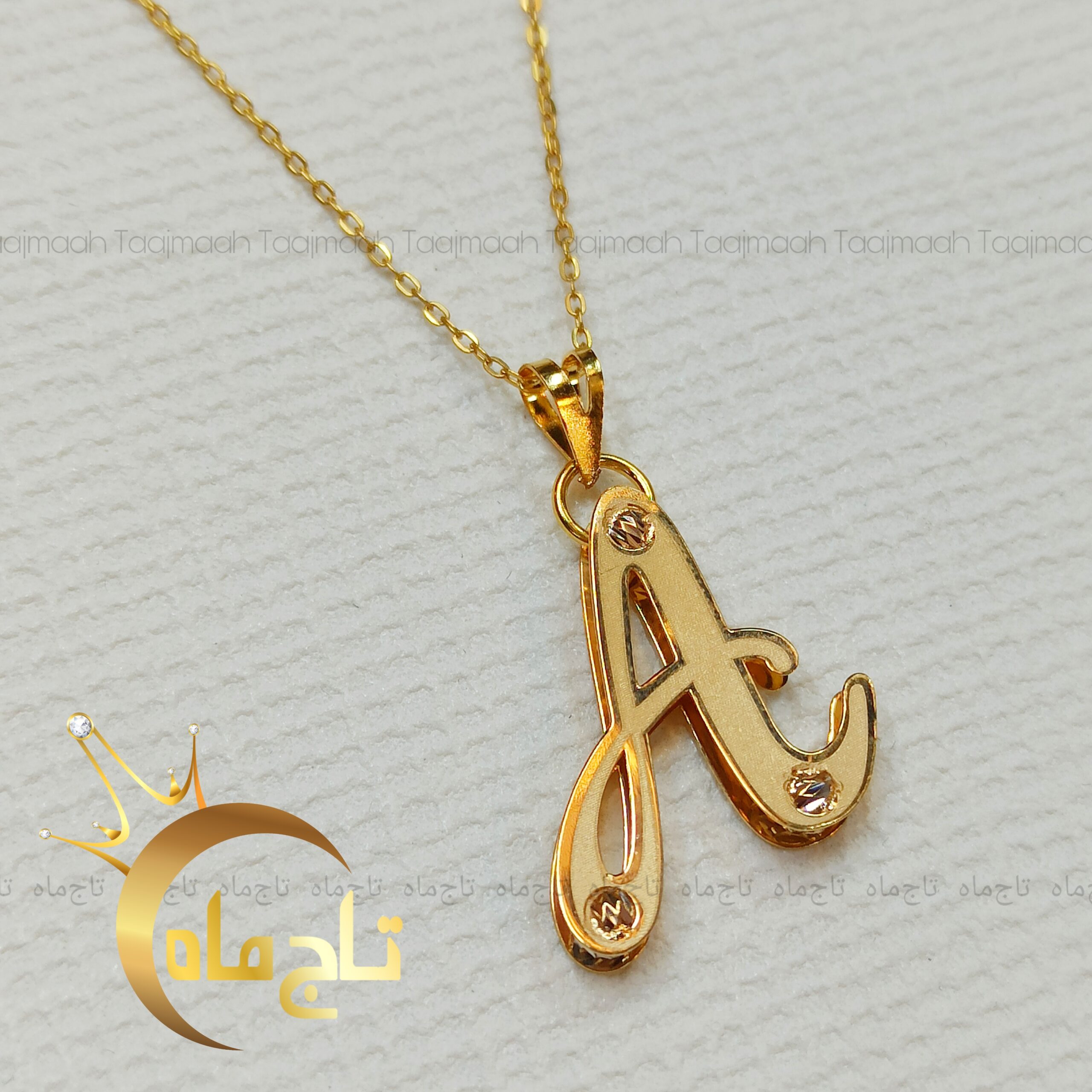 پلاک حرف انگلیسی A سه بعدی طلا تاج ماه